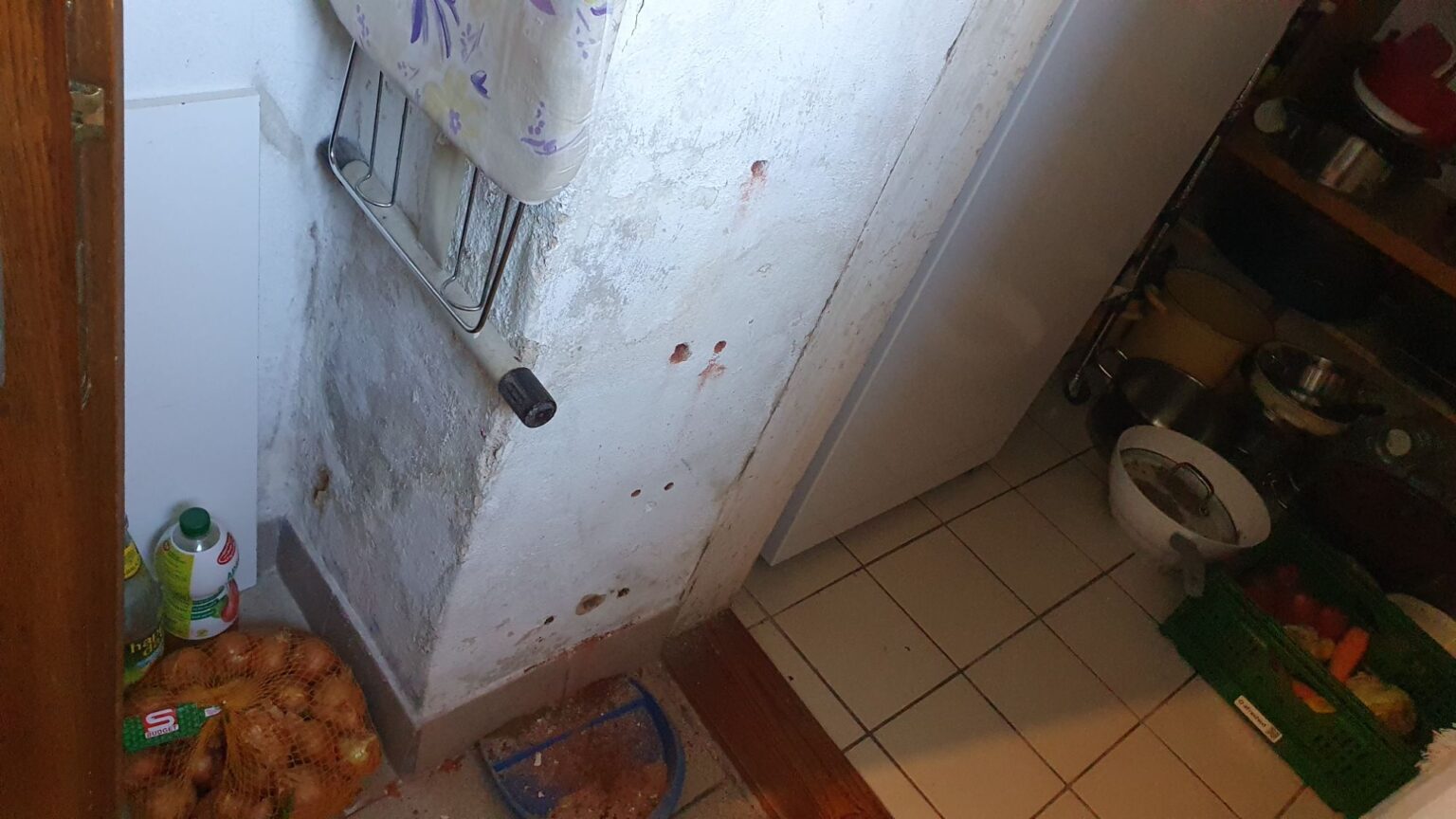 Durch einen nicht abgedichteten, teilweise undichten Betonboden zog Feuchtigkeit kapillar nach oben.